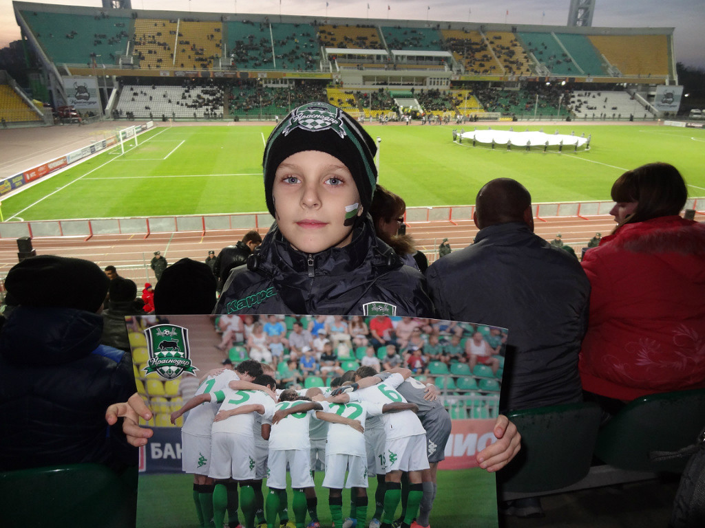 вот ребята загримированы, болельщики заняли свои места на трибунах, развернули