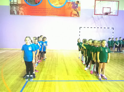 На первом уроке ребят ждали соревнования «Весёлые старты».  В спортивном зале встретились учащиеся 1 «А», 1 «Б», 1 «В», 1 «Г» классов.  Поприветствовав друг друга, команды приступили к эстафетам. Участвовали все ученики класса, сначала соревновались мальчики, потом их сменяли девочки.