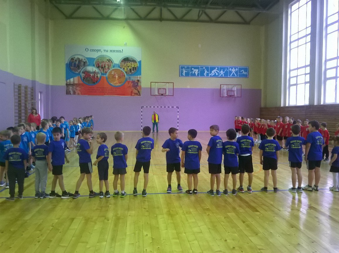 первом уроке ребят ждали соревнования «Весёлые старты». В спортивном зале встретились учащиеся 1 «А»,